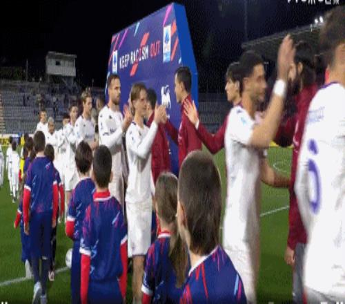 雙方球員入場,比賽馬上開始