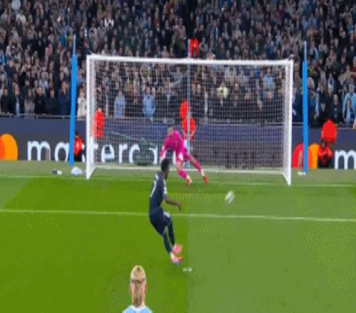 第26分鐘,卜拉欣-迪亞斯后場失誤,多庫送出直塞,哈蘭德小角度射門,庫爾圖瓦伸腿化解,羅德里補射打飛!