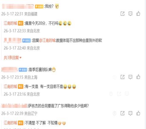 目前還不能確定哪些球隊接觸了威廉姆斯,但根據(jù)動態(tài)下方“江南的城”給出一些回復,廣東隊很可能會是威廉姆斯的潛在下家(據(jù)悉,威廉姆斯已經到了香港)。