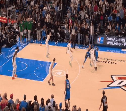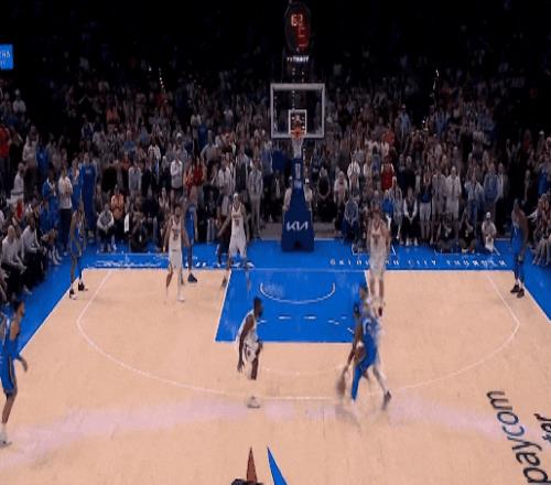 今天雷霆對(duì)魔術(shù)最后一節(jié)99比96膠著時(shí),亞歷山大一個(gè)單挑撤步三分,擊倒班凱羅。