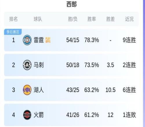 緊隨其后的馬刺只落后3.5個(gè)勝場,再贏兩場快船再輸兩場,基本也能鎖定了。