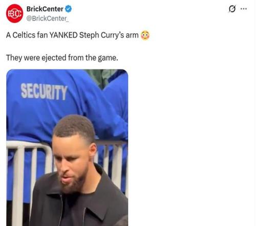 根據賽后美媒《BrickCenter》報道,兩名拉拽庫里的球迷已經被驅逐出場。