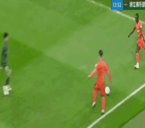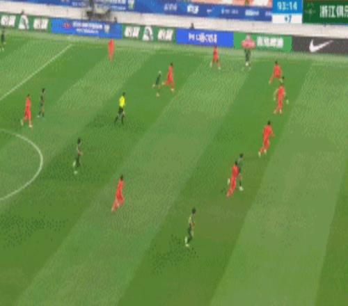 開場后,浙江隊主動發(fā)動進攻,王鈺棟在邊路的狀態(tài)很好,他的傳中質量很高,皮球踢出的弧線很漂亮。