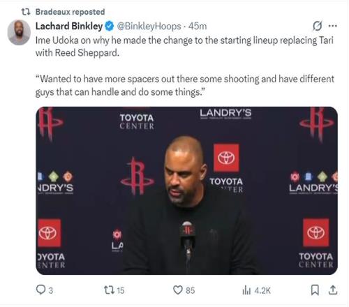火箭7喜臨門!謝潑德將繼續(xù)先發(fā)伊森8戰(zhàn)首三分烏度卡助KD破包夾