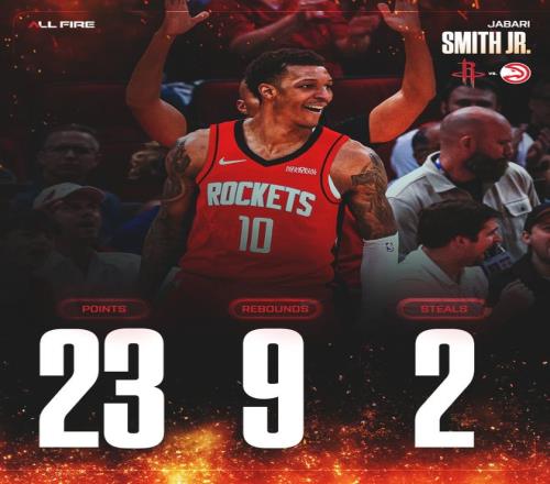 第四喜:小賈巴里-史密斯變得愈發(fā)穩(wěn)定了,此役35分鐘,14中7,三分8中3,拿到23分9籃板2助攻2搶斷,最近的七場比賽場均35.1分鐘,拿到18.6分6.1籃板2.3助攻0.9搶斷0.3蓋帽,命中率50%,三分命中率36%。