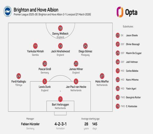 英超第31輪,布萊頓主場對陣?yán)锲?,本場比賽雙方首發(fā)陣容中一共有7名荷蘭球員,創(chuàng)英超歷史單場最多紀(jì)錄。