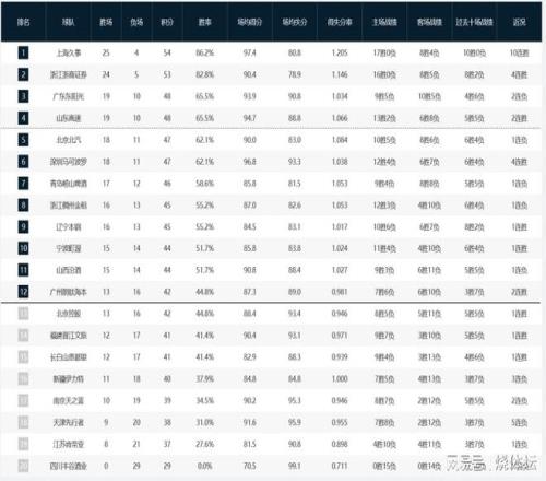 CBA最新排名:廣東前三位置不穩(wěn),上海10連勝領(lǐng)跑,新疆又掉隊(duì)