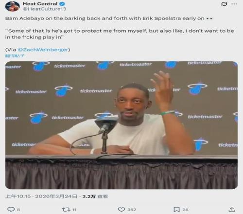 近日阿德巴約接受采訪時(shí),多次強(qiáng)調(diào)自己不想打附加賽。理想很豐滿,現(xiàn)實(shí)很骨感。目前熱火38勝34負(fù)排名東部第9,領(lǐng)先第10的黃蜂0.5個(gè)勝場,落后第8的魔術(shù)同樣是0.5個(gè)勝場。熱火落后第6的老鷹2個(gè)勝場,想要逃離附加賽很難。