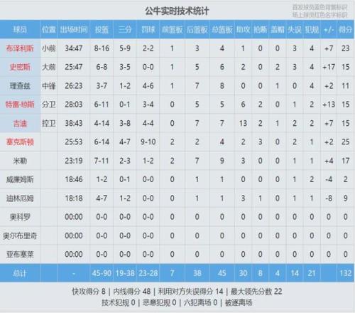 杜蘭特出戰(zhàn)39分32秒,投籃22中15,三分9中5,罰球8中5,得到40分7籃板5助攻4失誤,正負(fù)值-18全場最低。申京19投16中,得到33分13籃板10助攻2搶斷2蓋帽,正負(fù)值-6。杜蘭特、申京、阿門合計(jì)54中39得到96分,其余隊(duì)友38中10僅得28分。